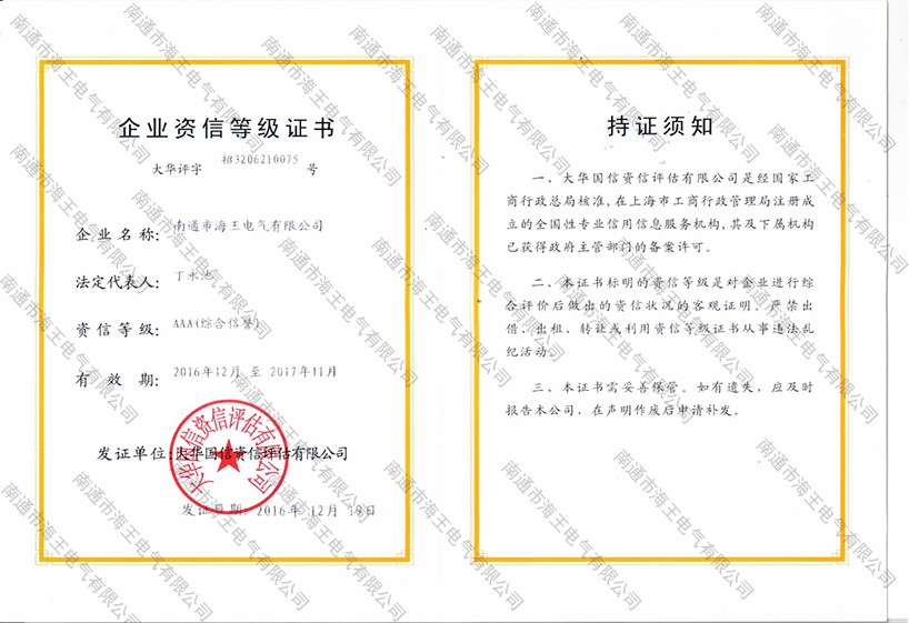 企業(yè)資信等級(jí)證書