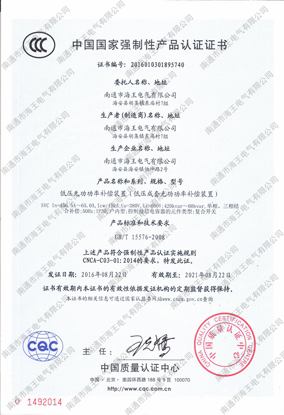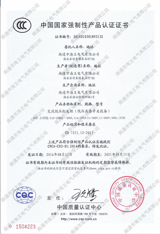 中國國家強(qiáng)制性產(chǎn)品認(rèn)證證書